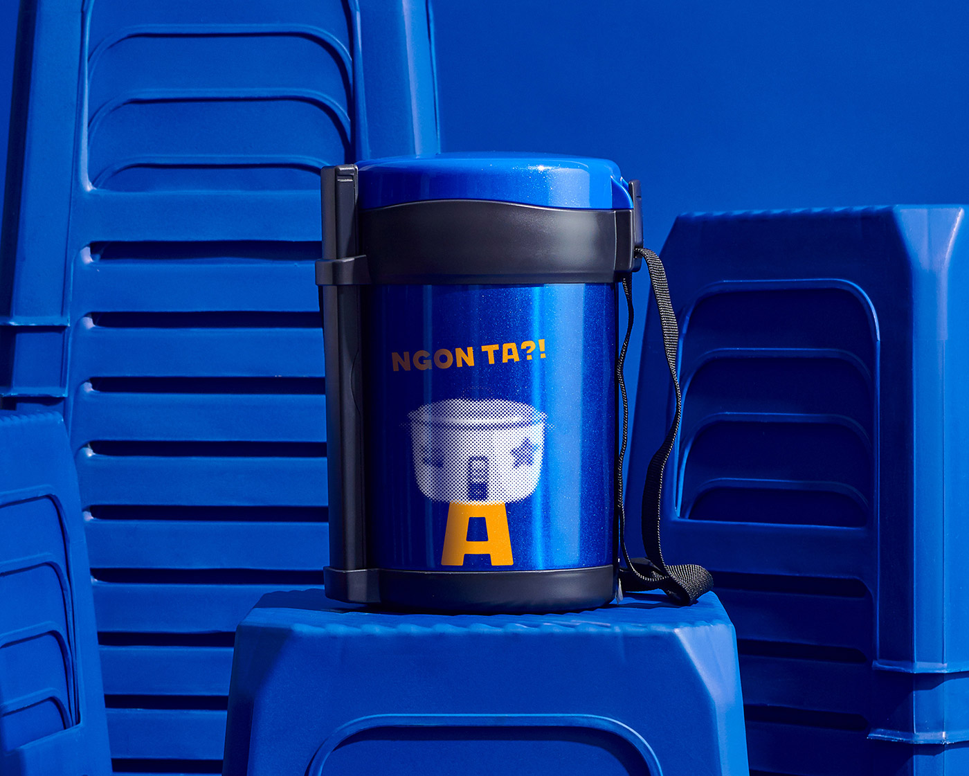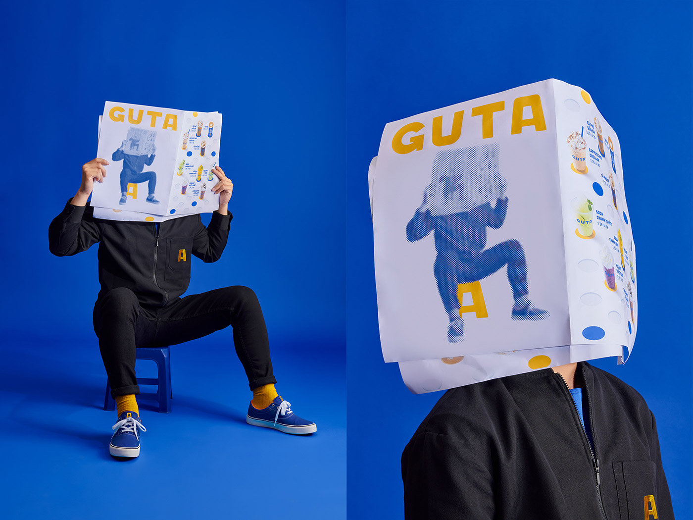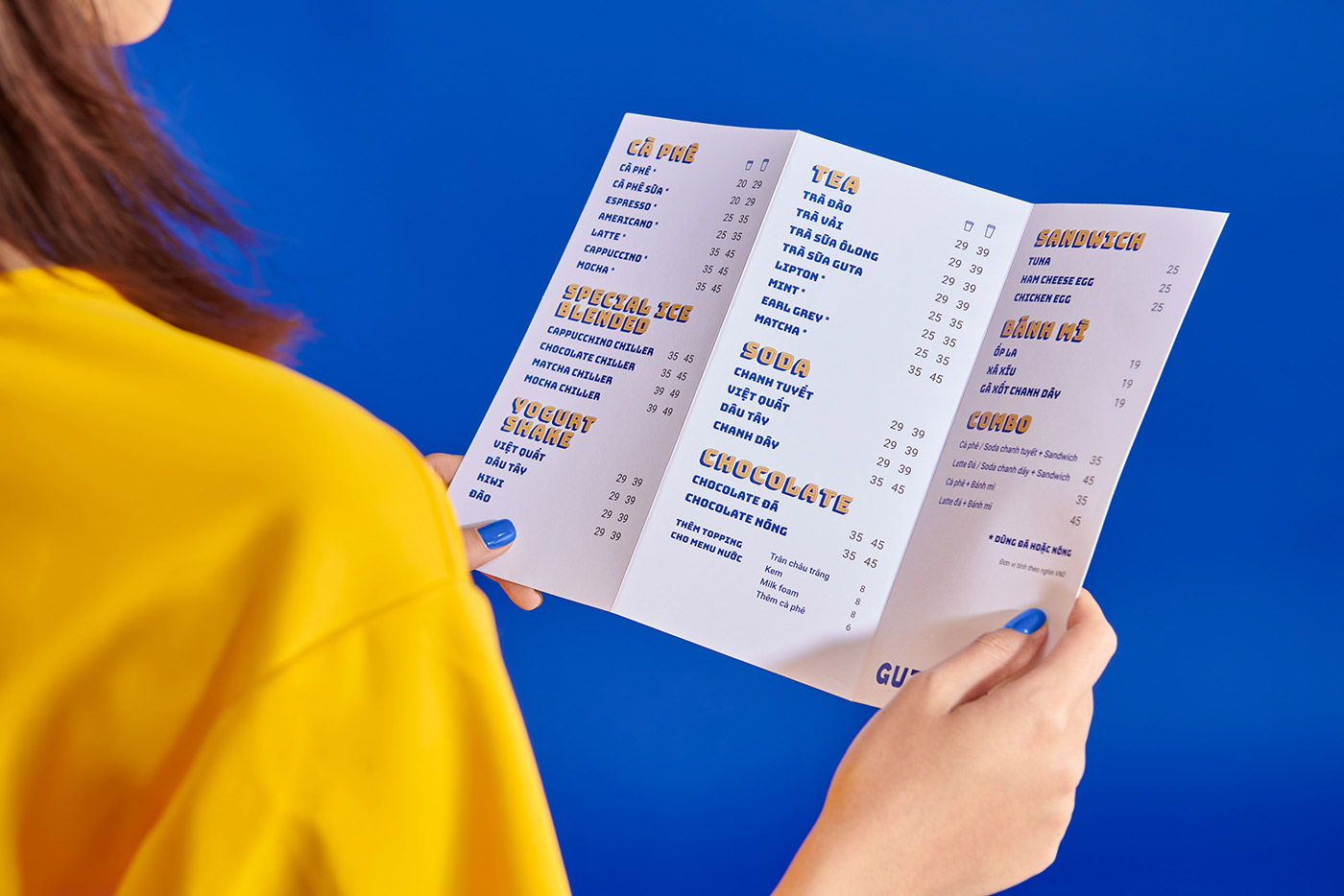 Inspired by the iconic Vietnam Social Security propaganda poster that hangs everywhere around the country, the blue and yellow palette was adapted for Guta. Just like the poster’s slogan, the colour choice represents the idea of “a friend of every worker.”